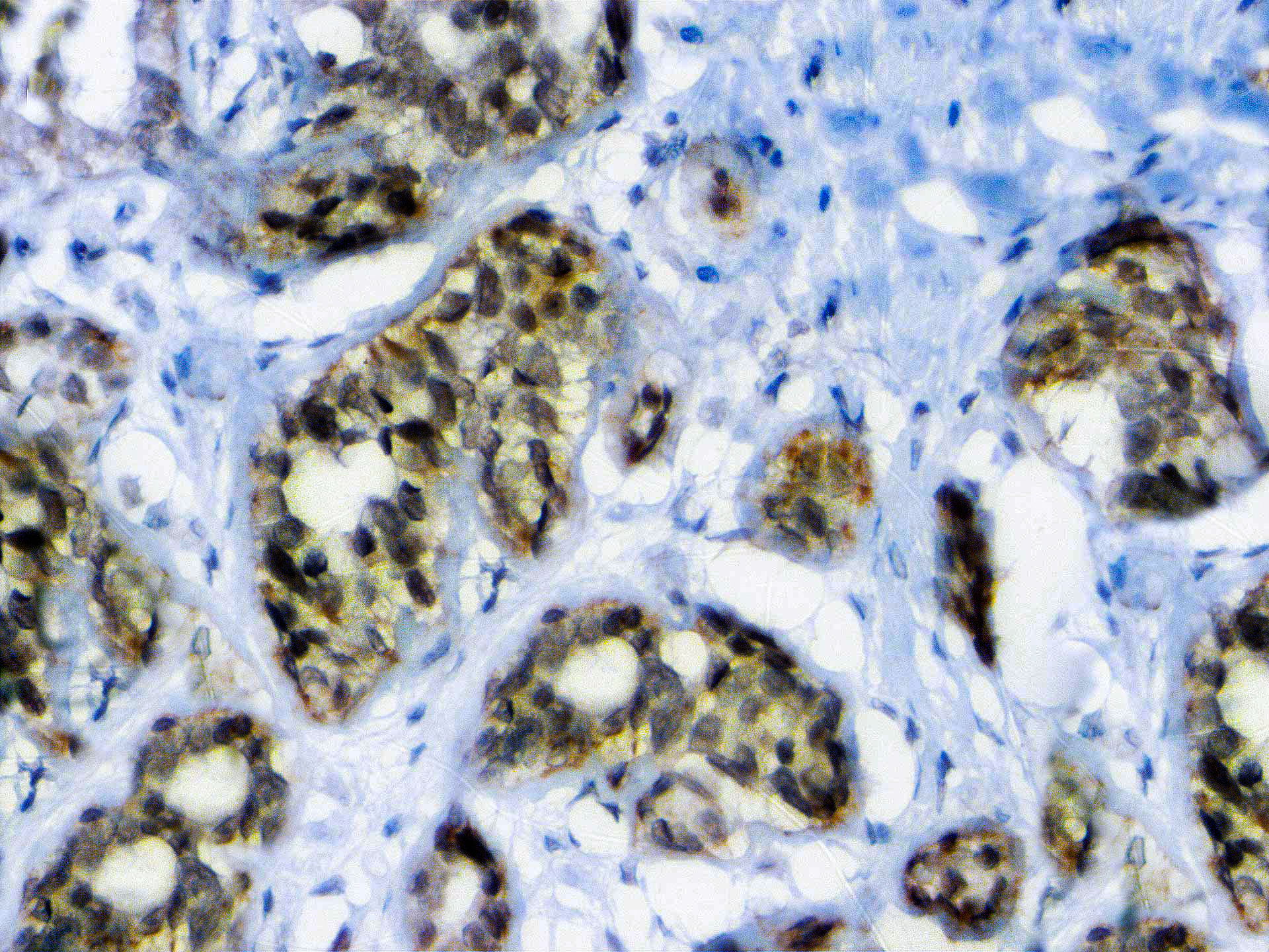 BAP1 (BRCA1-Associated Protein 1) was initially identified as a protein that binds to BRCA1. BAP1 is a tumor suppressor that is believed to mediate its effects through chromatin modulation, transcriptional regulation, and possibly via the ubiquitin-proteasome system and the DNA damage response pathway. Germline mutations of BAP1 confer increased susceptibility for the development of several tumors, including uveal melanoma, epithelioid atypical Spitz tumors, cutaneous melanoma, and mesothelioma. Somatic BAP1 mutations are seen in cutaneous melanocytic tumors (epithelioid atypical Spitz tumors and melanoma), uveal melanoma, mesothelioma, clear cell renal cell carcinoma, and other tumors. BAP1 immunohistochemistry is particularly useful in differentiating malignant mesothelioma (nuclear negative) vs. reactive mesothelial proliferation (nuclear positive).