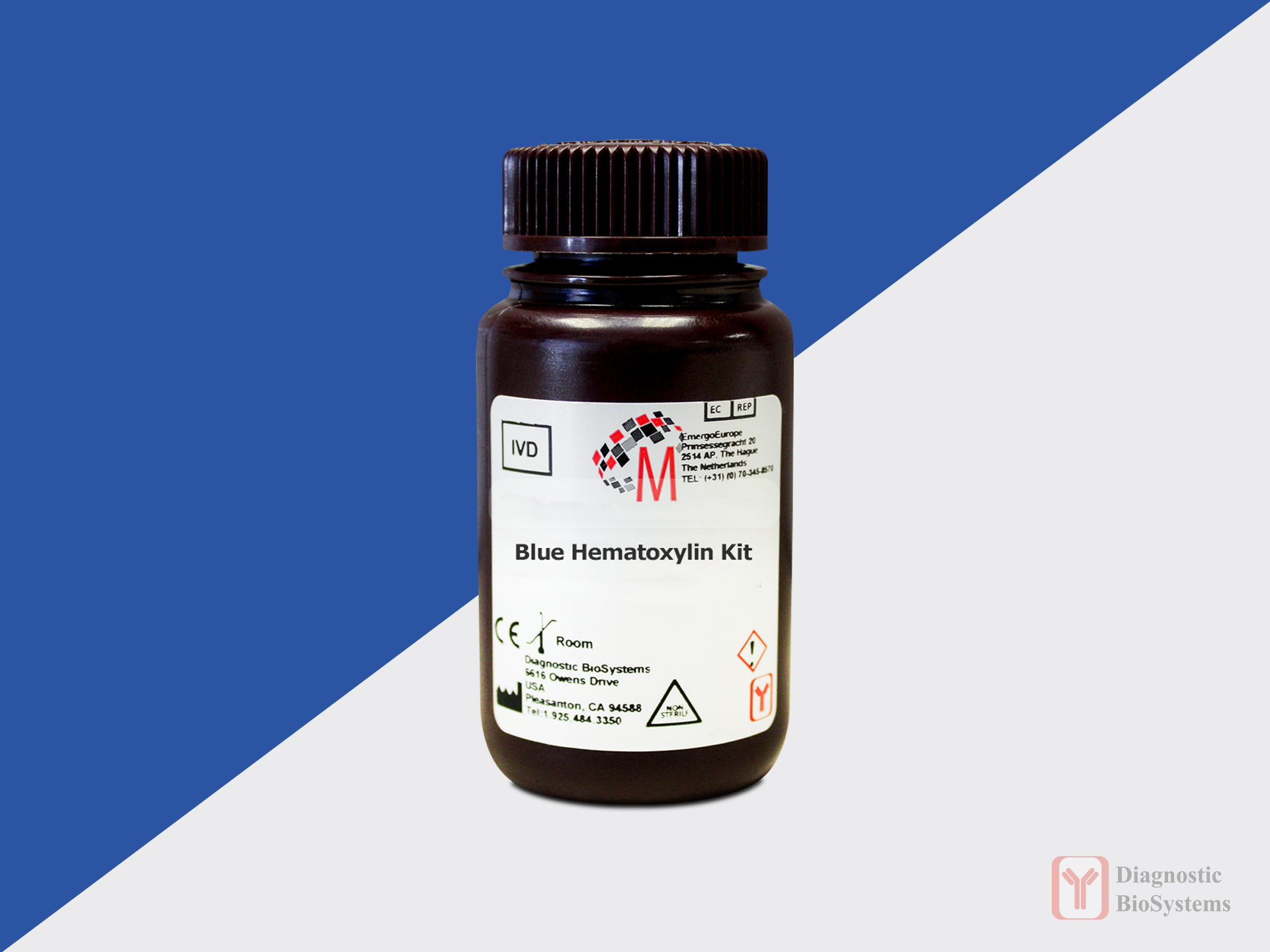 Hematoxylin is a histological staining reagent suitable for visualization of nuclei in tissue sections. Blue Hematoxylin, is a blue nuclear counterstain.
