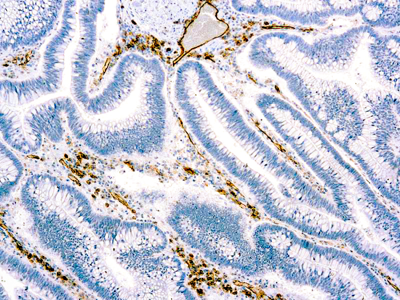 CD31 (PECAM-1) is a transmembrane glycoprotein member of the immunoglobulin supergene family of adhesion molecules. CD31 is expressed by stem cells of the hematopoietic system and is primarily used to identify and concentrate these cells for experimental studies as well as for the bone marrow transplantation. Anti-CD31 has shown to be highly specific and sensitive for vascular endothelial cells. Staining of nonvascular tumors (excluding hematopoietic neoplasms) is rare. CD31 MAb reacts with normal, benign, and malignant endothelial cells which make up blood vessel lining. The level of CD31 expression can help to determine the degree of tumor angiogenesis, and a high level of CD31 expression may imply a rapidly growing tumor and potentially a predictor of tumor recurrence.