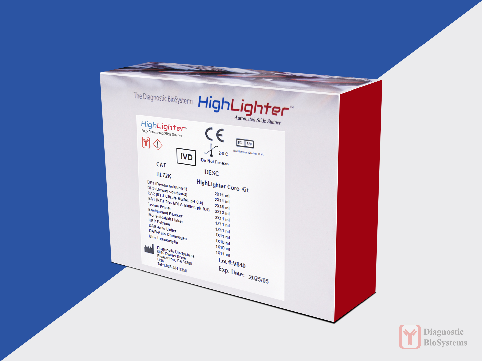 The DBS HighLighter™ 360 Autostainer Core Kit with all content reagents are RFID tagged and assigned for DBS HighLighter™ 360 Autostainer and intended to use for qualitative immunohistochemistry.