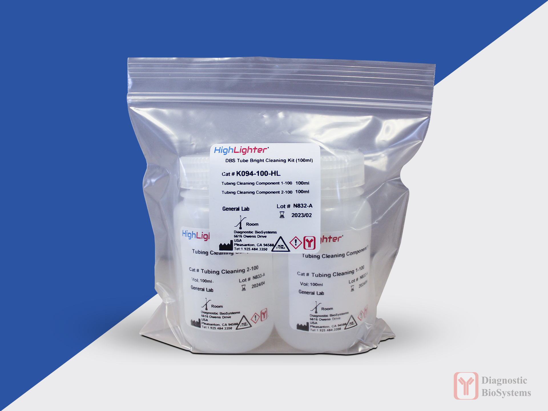 DBS Tubing Cleaning kit is used to remove DAB or Hematoxylin precipitates in the reagent aspirating tubing (Z1 tubing) and remove wax residues in the waste tubing (Z2 tubing) of the HighLighter.