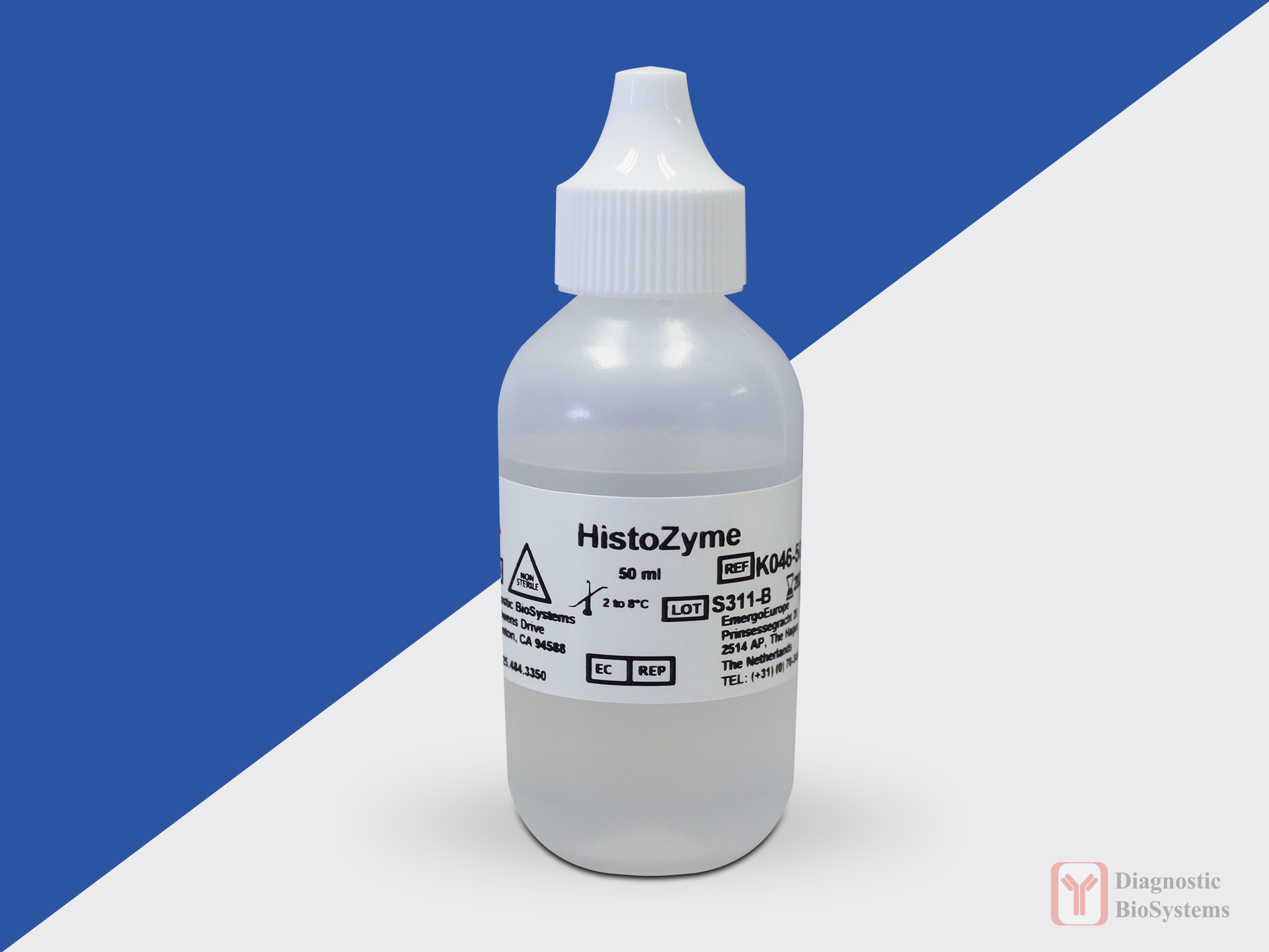 HistoZyme is a proteolytic enzyme solution that results in superior staining over traditionally used enzyme pretreatments, such as pepsin and trypsin. Moreover, HistoZyme requires only a brief incubation at room temperature. Performing antigen recovery with HistoZyme, will allow you to dilute the primary antibody 5 to 10 fold further and achieve optimal staining.