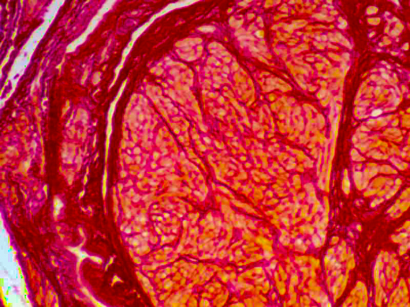 The Picro-Sirius Red Stain Kit (For Collagen) is intended for use in the histological visualization of collagen I and III fibers in addition to muscle in tissue sections.