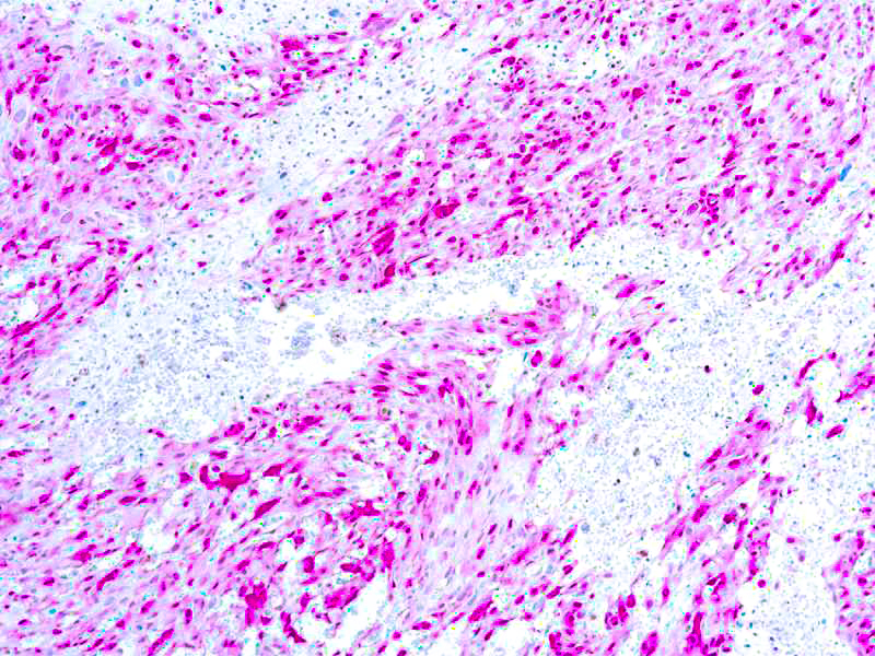 The family of EF-hand type Ca2+ -binding proteins includes calbindin, S-100 alpha and beta, calgranulins, B and C, and the parvalbumin family members, including parvalbumin alpha and parvalbumin beta. The S-100 protein is involved in the regulation of cellular processes such as cell cycle progression and differentiation. S-100 protein may function in the activation of Ca2+ induced Ca2+ release, inhibition of microtubule assembly and inhibition of protein kinase C mediated phosphorylation. Two S-100 subunits, sharing 60% sequence identity, have been described as S-100 alpha chain and S-100 beta chain. Three S-100 dimeric forms have been characterized, differing in their subunit composition of two alpha chains, two beta chains or one alpha and one beta chain. S-100 localizesto the cytoplasm and nuclei of astrocytes, Schwann’s cells, ependymomas and astrogliomas. S-100 is also detected in almost all benign naevi, malignant melanocytic tumours and in Langerhans cellsin the skin. Calbindin, S-100 proteins and parvalbumin proteins are each expressed in neural tissues. In addition, S-100 alpha and beta are present in a variety of other tissues and calbindin is present in intestine and kidney.
