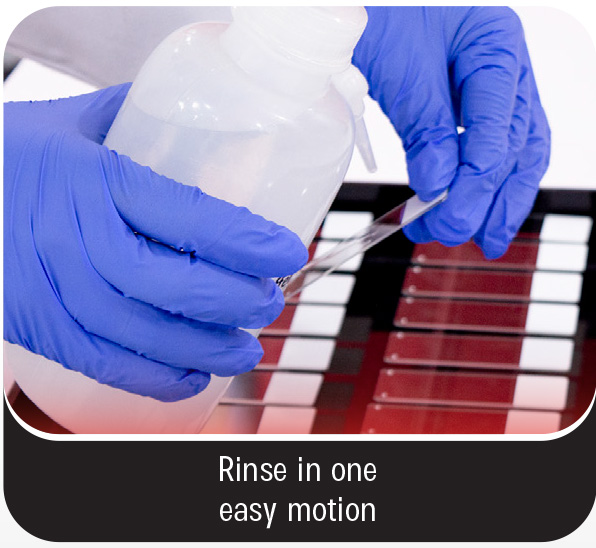 - Ease to rinse and avoids majority of individual slides handling during staining.