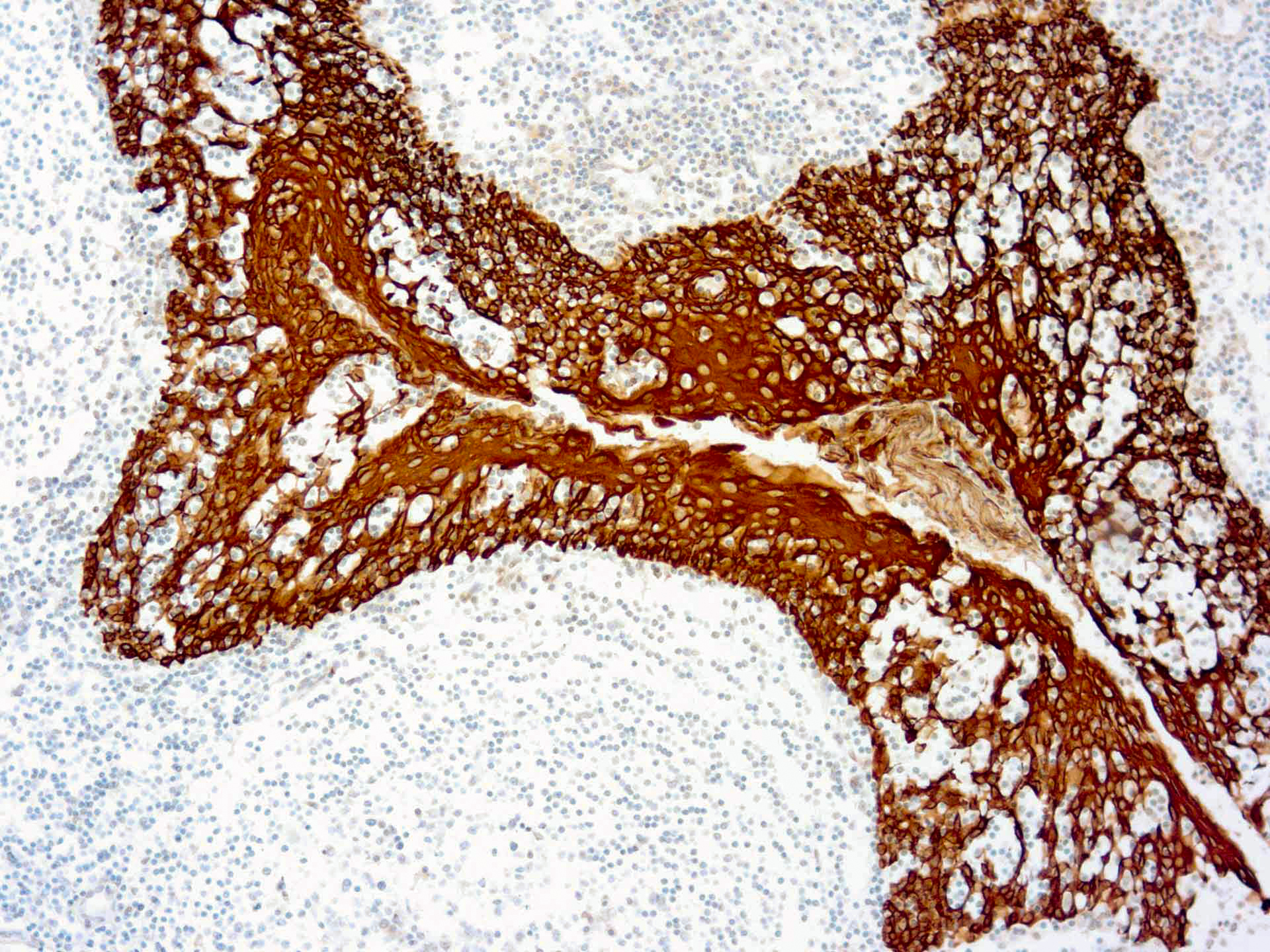 DAB, a widely used chromogen for immunoperoxidase staining, is well accepted among pathologists because of its increased sensitivity and ability to give cleaner background as compared to amino ethylcarbazole (AEC). Specimens stained in DAB can be dehydrated, cleared, and mounted for permanent record keeping. Stable DAB/Plus is more sensitive and stable than traditional working DAB solutions.